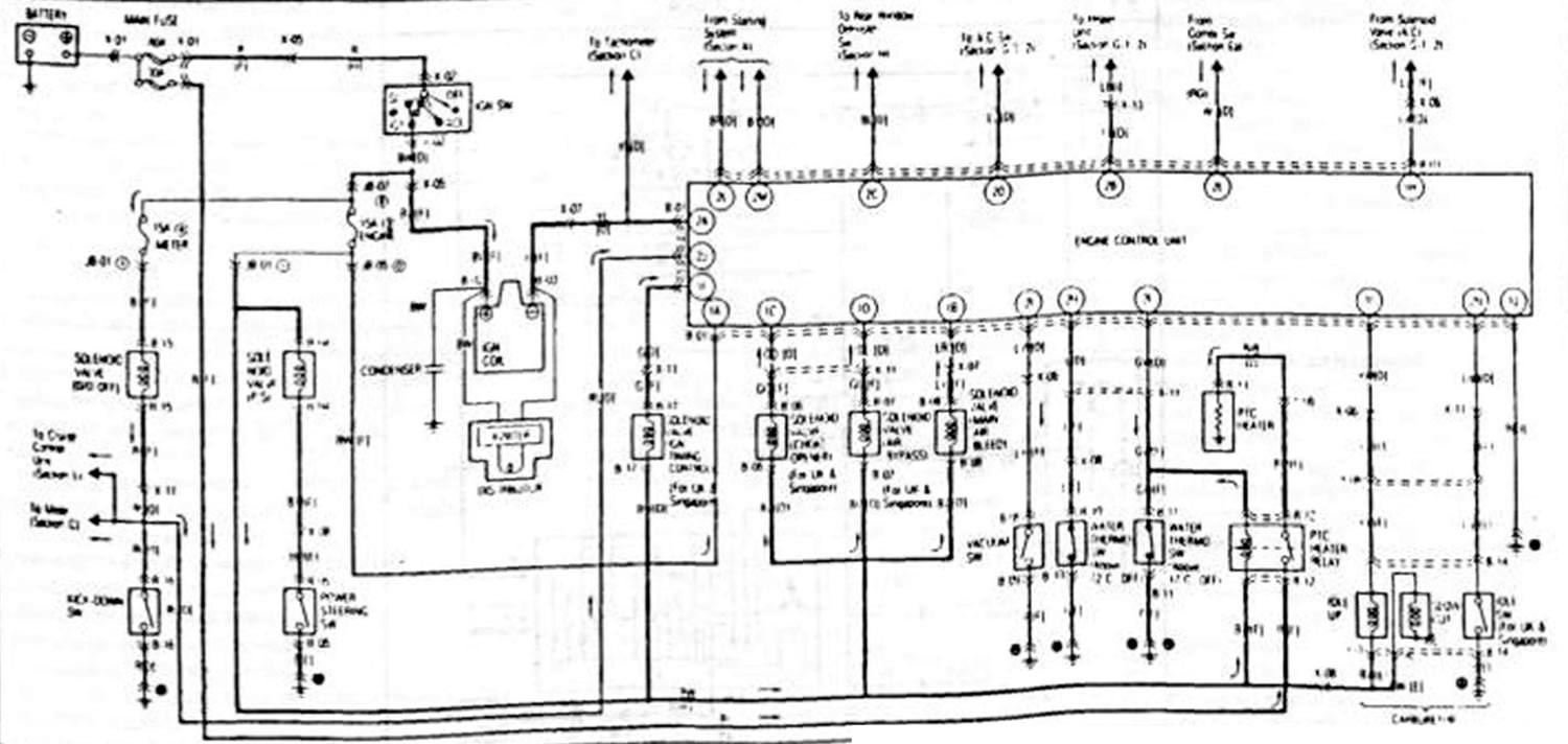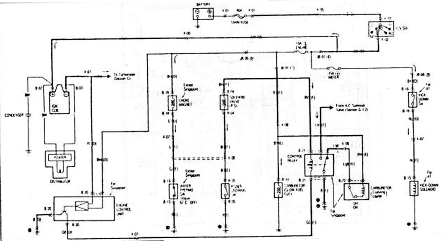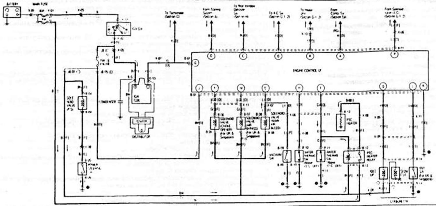 B-2. Схема включения электродвигателя вентилятора системы охлаждения… Мазда Фамилия 5 (1985-1989)