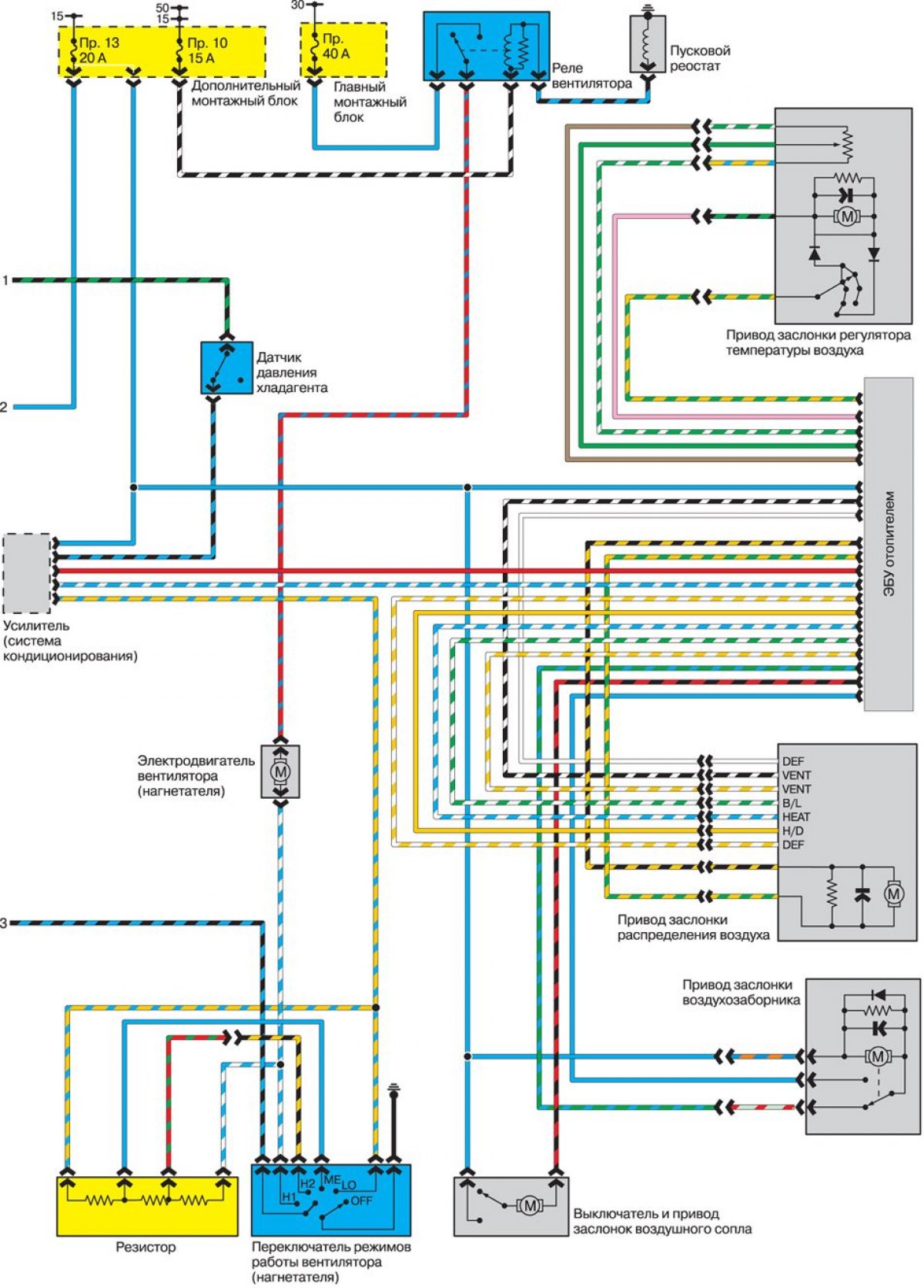 Печка и кондиционер (с 4-цил. двигателем, 1993 г.)