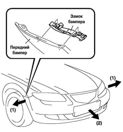 Внимание! Если передний бампер освобождается только с одной стороны при падений бампера, он может быть поврежден. При освобождении замка переднего бампера, закрепите бампер так, чтобы он не упал.