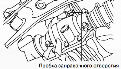6. След наливане на масло, монтирайте пробката за пълнене с нова шайба и затегнете с въртящ момент от 40-53 Nm.