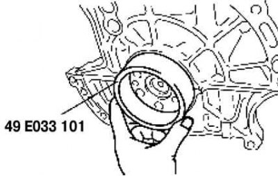 Нанесете чисто двигателно масло върху задното маслено уплътнение.