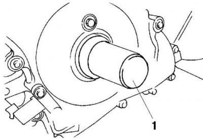 Фиг. 2.110. Натискане на предния семеринг: 1- специално устройство