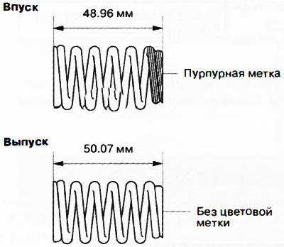 Note: The valve springs for the intake and exhaust valves are different. Therefore, before measuring the length of the springs in a free state, it is necessary to determine the valve spring by the presence or absence of a color mark.