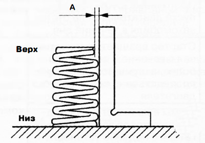 Rotate the valve spring one full revolution and measure the distance A at the point of maximum clearance. If the measured value exceeds the maximum permissible value, replace the valve spring with a new one.