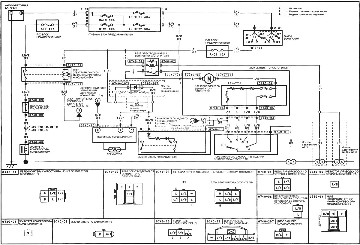 Схема 7: Отопитель и воздушный кондиционер (до 1985 года) Мазда Капелла 3 (1982-1992, бензин)