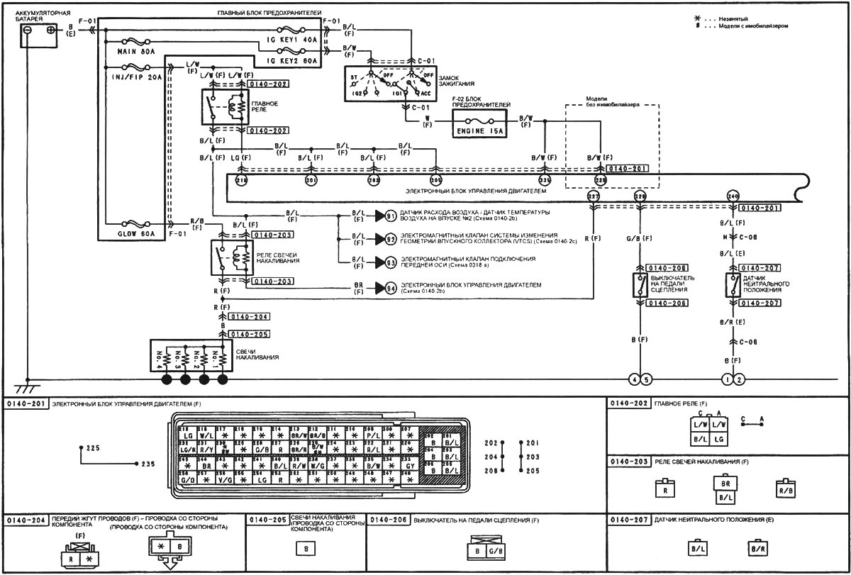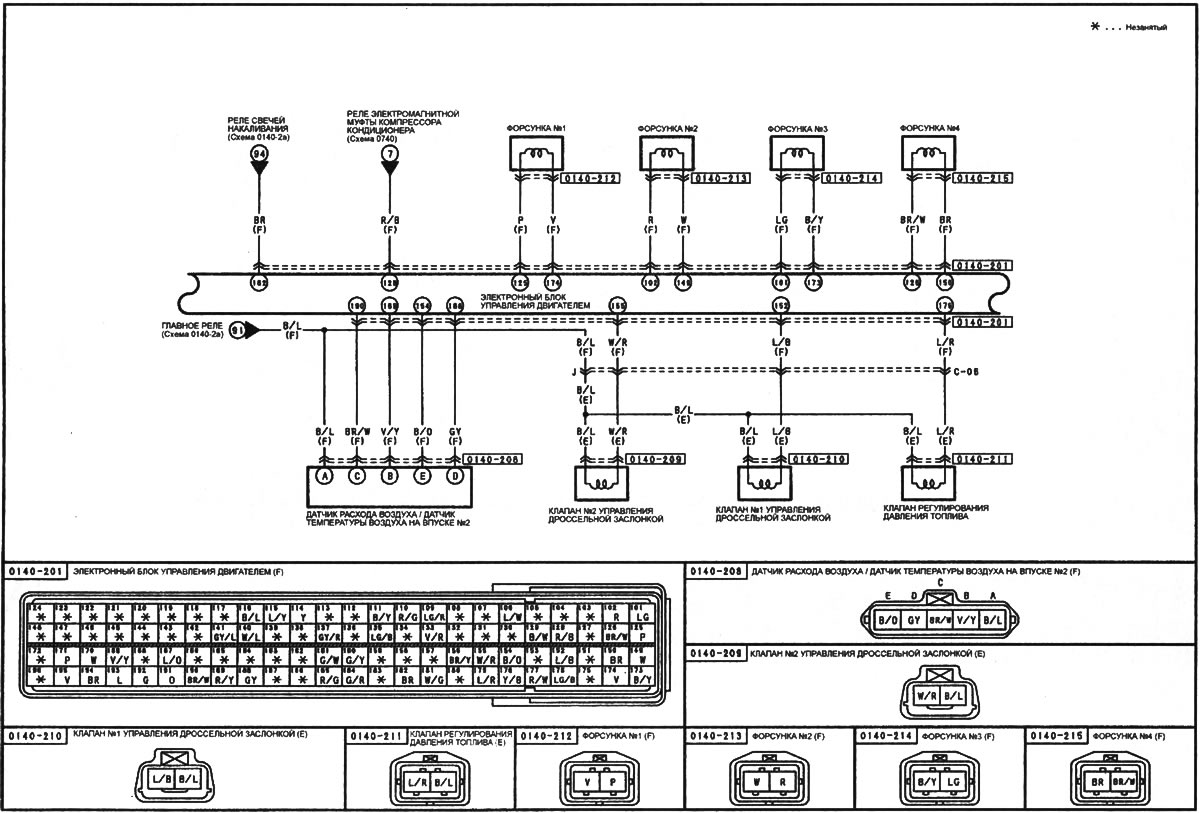 Система управления двигателем — модели с 4-цилиндровым двигателем и… Мазда Капелла 6 (1997-2005, бензин)