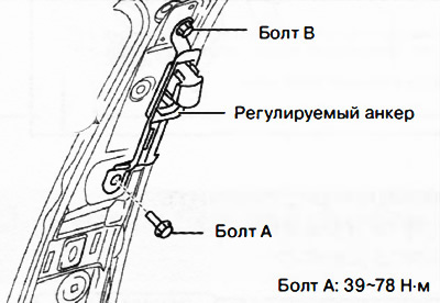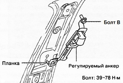 5. Odvijte vijak koji pričvršćuje gornje sidro sigurnosnog pojasa i uklonite gornju oblogu B stupa.