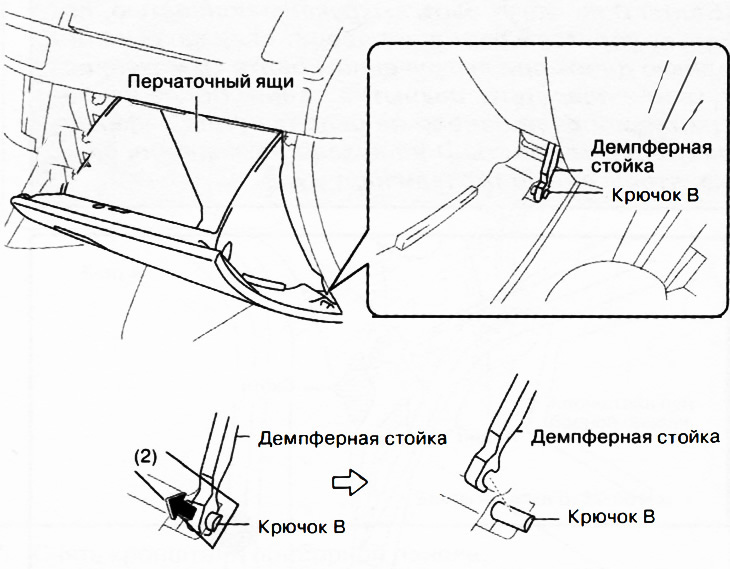 Uwaga. Zamknięcie schowka podręcznego przy odłączonym amortyzatorze może spowodować jego uszkodzenie. Przed zamknięciem schowka upewnij się, że amortyzator jest podłączony.