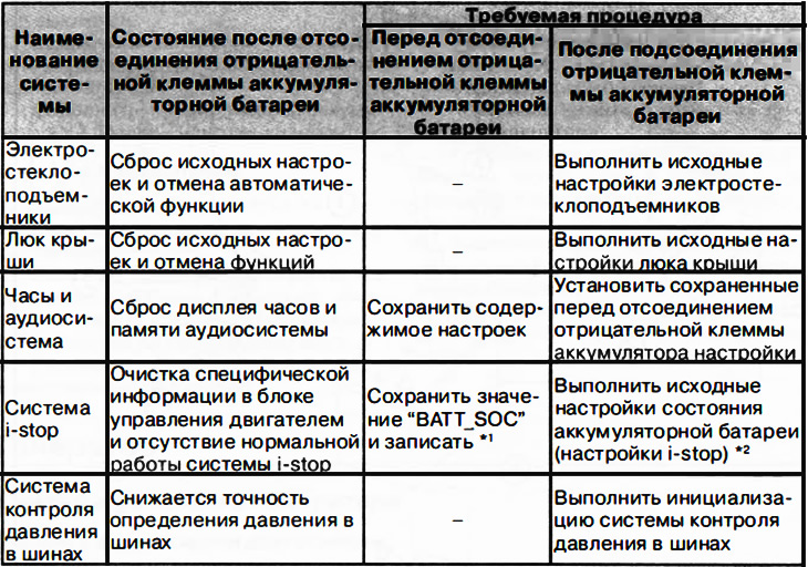 *1: W pojazdach wyposażonych w system i-stop, jeżeli biegun ujemny akumulatora zostanie odłączony i podłączony, należy przeprowadzić ustawienia początkowe (ustawienia i-stopu) stan baterii.