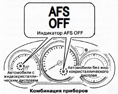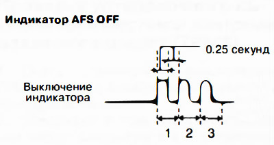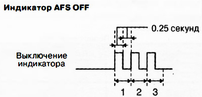Индикатор AFS OFF ће трептати три пута у интервалима од 0,25 секунди и искључити се као што је приказано на слици.