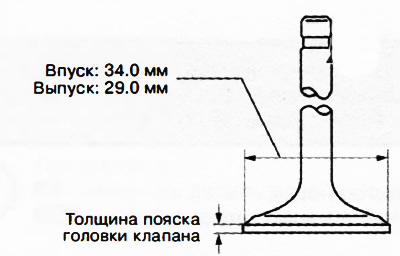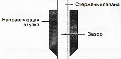 Максимална дозвољена вредност зазора између вретена вентила и вођице: 0,10 мм.