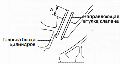 6. Помоћу чељусти измерите висину избочења (димензија А) вођица вентила. Ако измерена вредност није тачна, замените вођицу вентила.