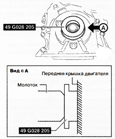 10. Ручно уградите предњу уљну заптивку радилице у предњи поклопац мотора.