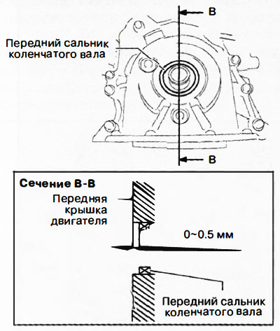 Напомена: Дубина притиска уљне заптивке предње радилице: 0-0,5 мм.